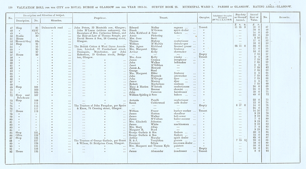 Glasgow Valuation Roll VR 1913-14, Ward 01, p130