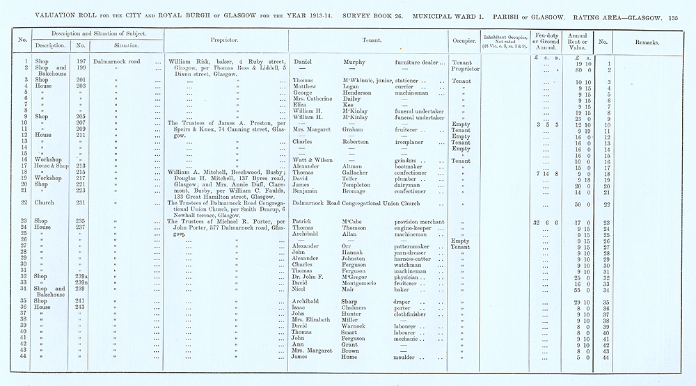 Glasgow Valuation Roll VR 1913-14, Ward 01, p135