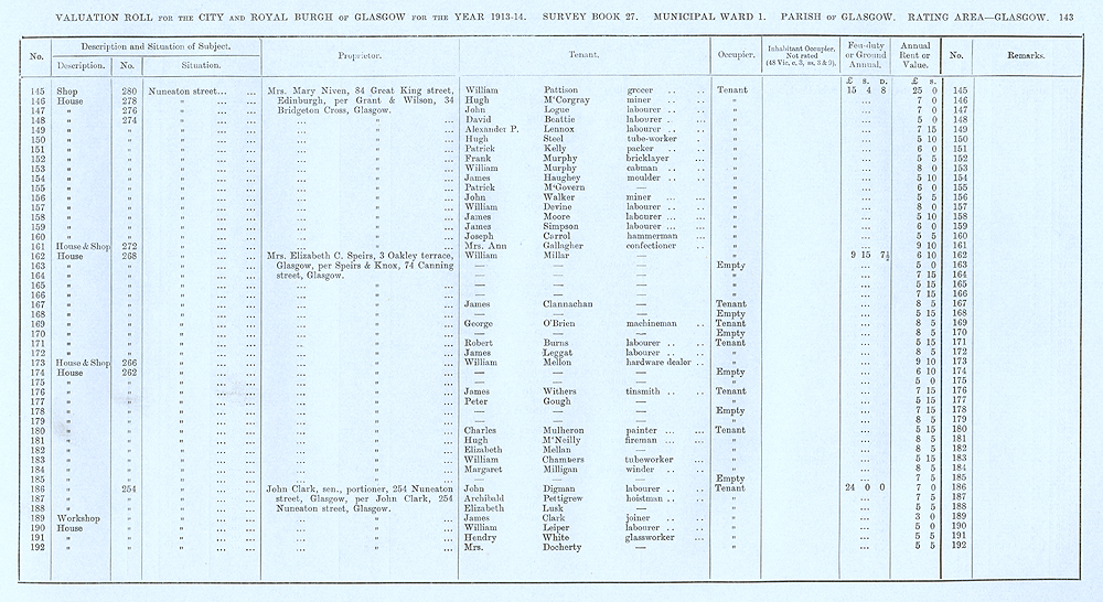 Glasgow Valuation Roll VR 1913-14, Ward 01, p143