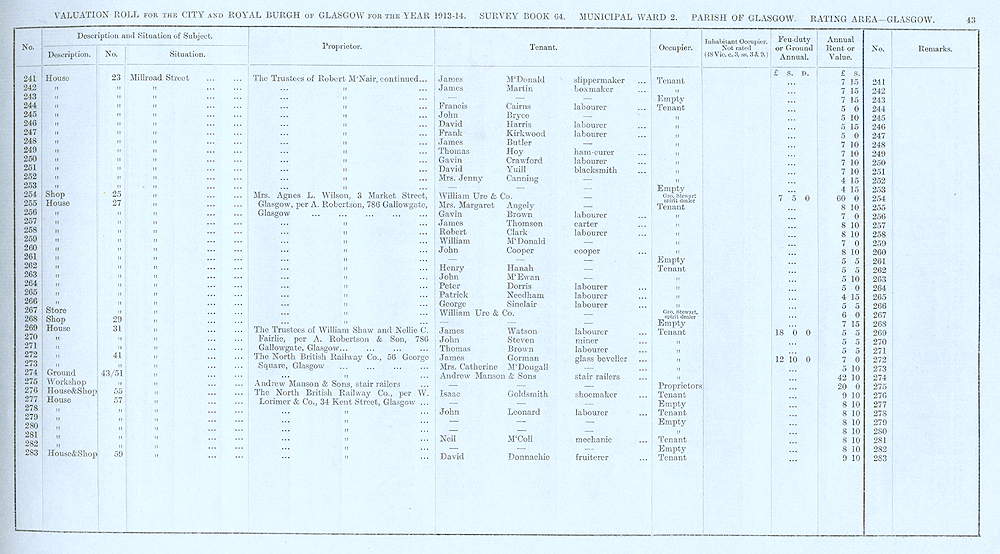 Glasgow Valuation Roll VR 1913-14, Ward 02, p043