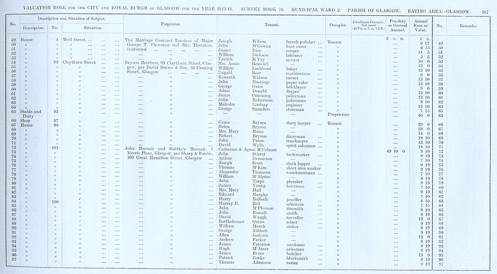 Glasgow Valuation Roll VR 1913-14, Ward 02, p107