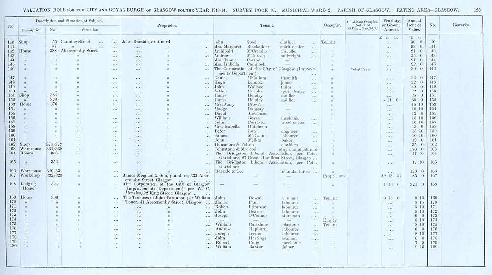 Glasgow Valuation Roll VR 1913-14, Ward 02, p123