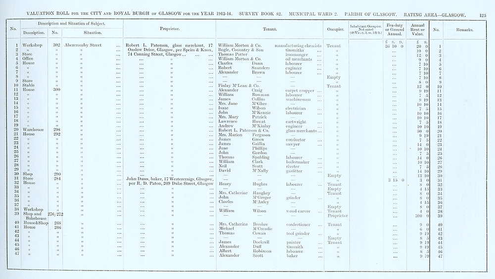 Glasgow Valuation Roll VR 1913-14, Ward 02, p125