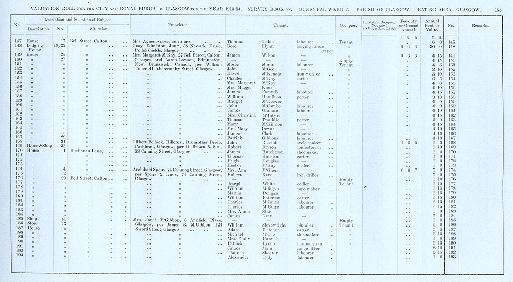 Glasgow Valuation Roll VR 1913-14, Ward 02, p155