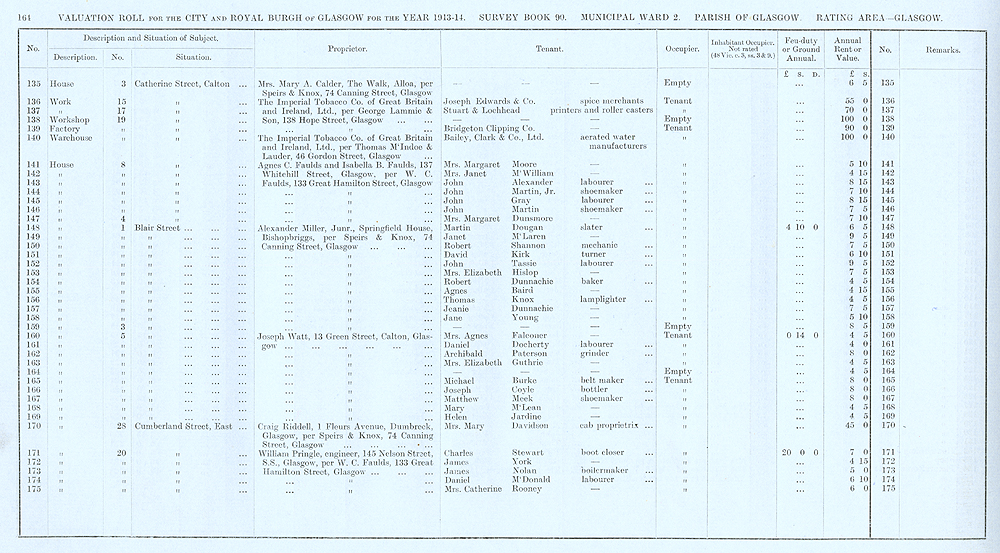 Glasgow Valuation Roll VR 1913-14, Ward 02, p164