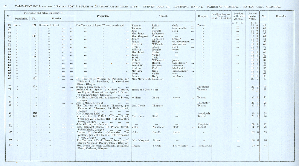 Glasgow Valuation Roll VR 1913-14, Ward 02, p168