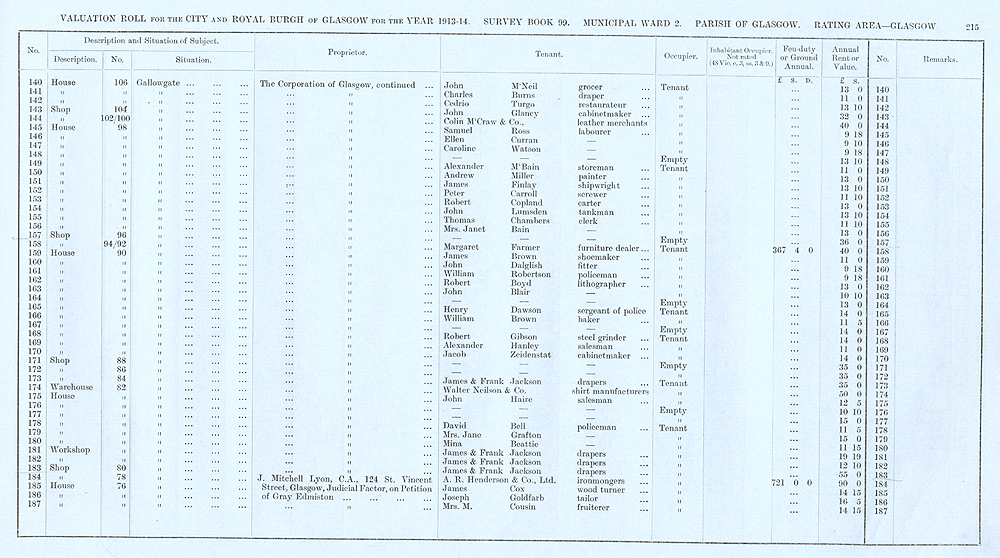 Glasgow Valuation Roll VR 1913-14, Ward 02, p215