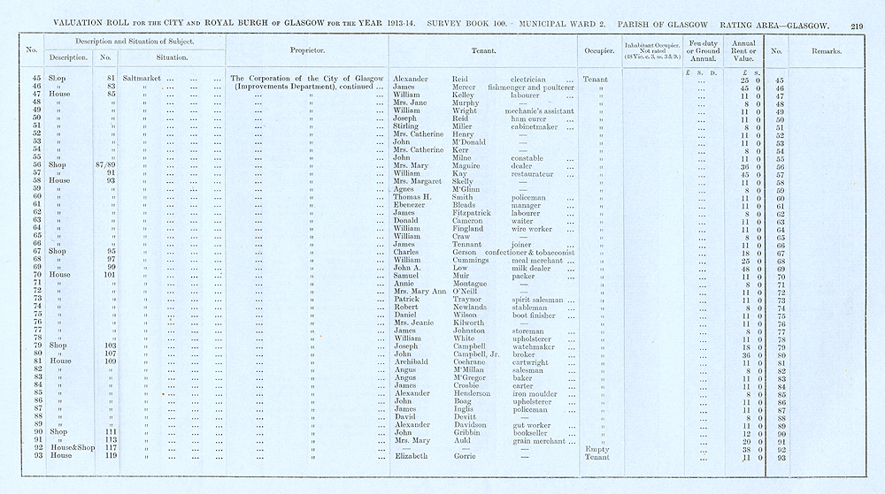 Glasgow Valuation Roll VR 1913-14, Ward 02, p219