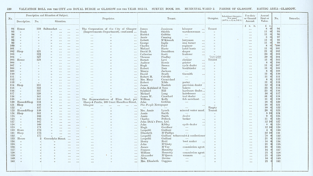 Glasgow Valuation Roll VR 1913-14, Ward 02, p220