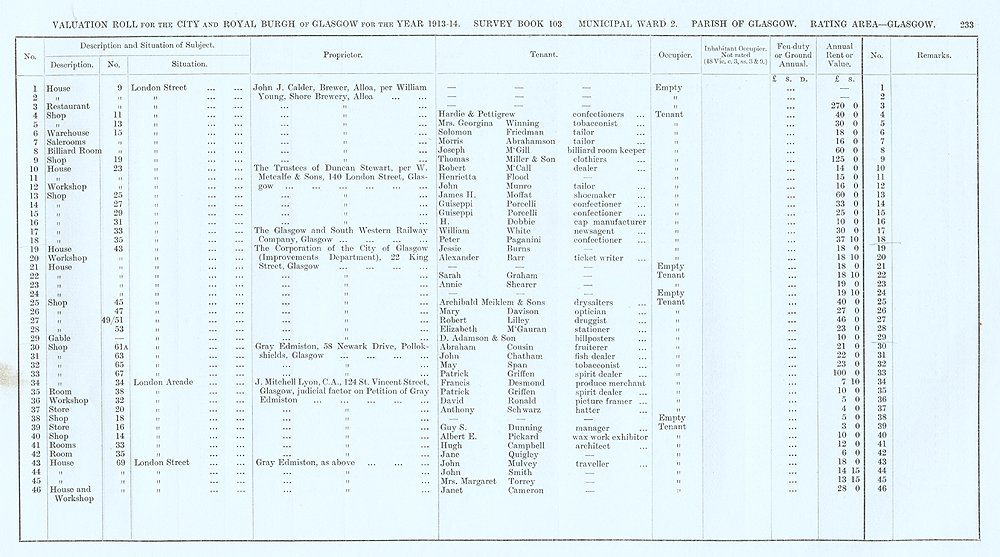 Glasgow Valuation Roll VR 1913-14, Ward 02, p233