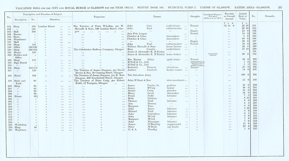 Glasgow Valuation Roll VR 1913-14, Ward 02, p237