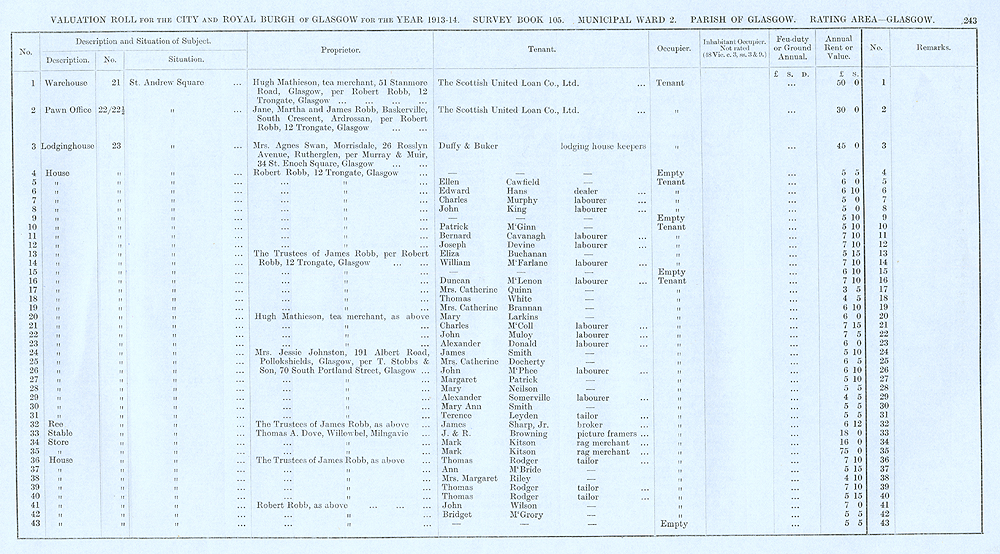 Glasgow Valuation Roll VR 1913-14, Ward 02, p243