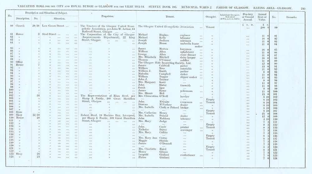 Glasgow Valuation Roll VR 1913-14, Ward 02, p245