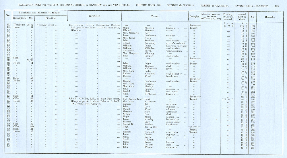 Glasgow Valuation Roll VR 1913-14, Ward 03, p189