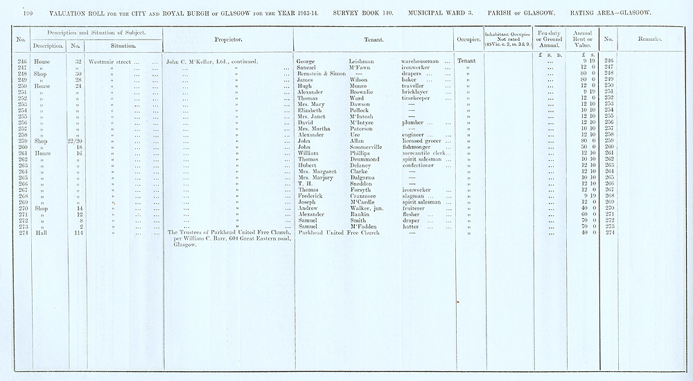 Glasgow Valuation Roll VR 1913-14, Ward 03, p190