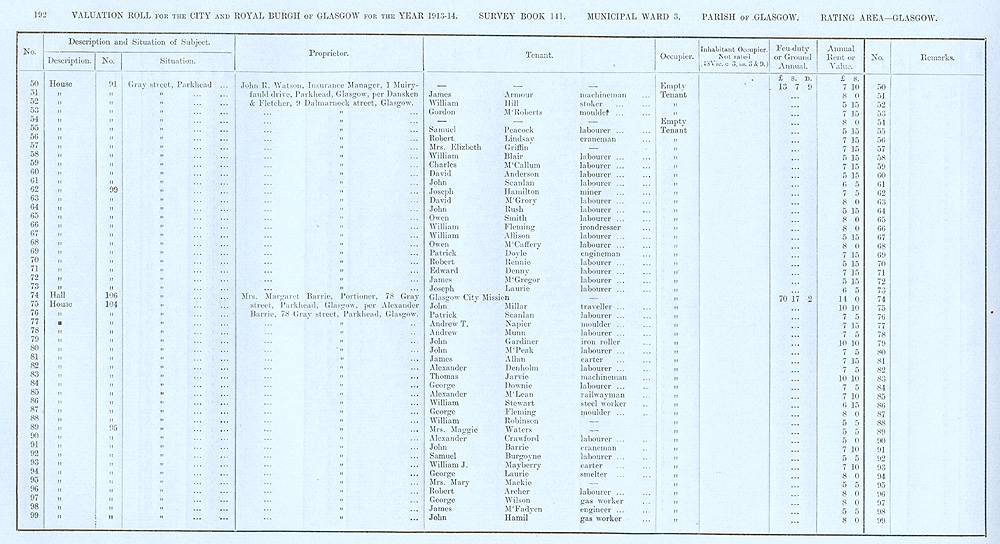 Glasgow Valuation Roll VR 1913-14, Ward 03, p192