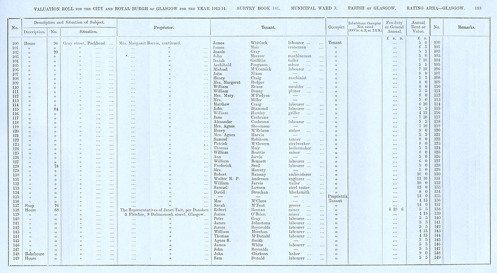 Glasgow Valuation Roll VR 1913-14, Ward 03, p193