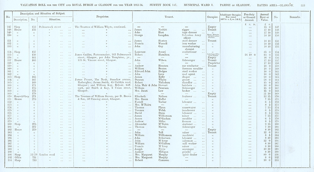 Glasgow Valuation Roll VR 1913-14, Ward 03, p223