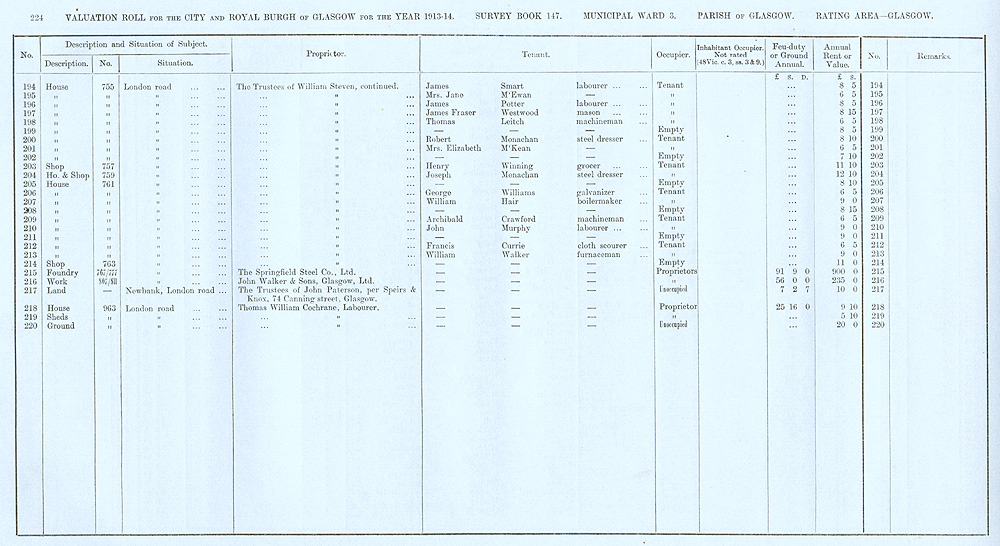 Glasgow Valuation Roll VR 1913-14, Ward 03, p224