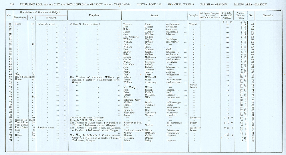 Glasgow Valuation Roll VR 1913-14, Ward 03, p226