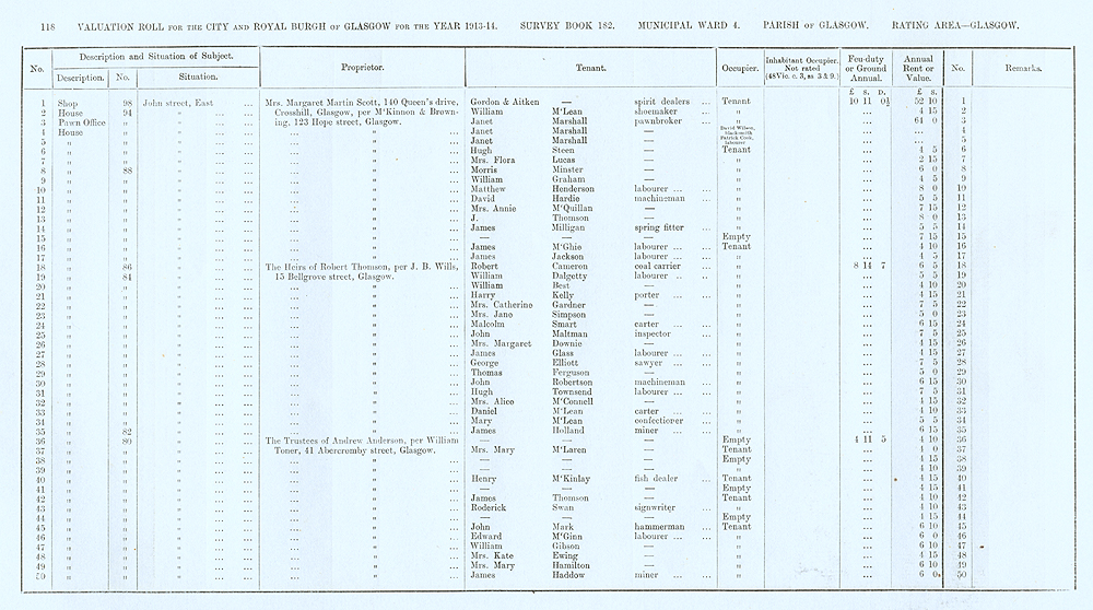 Glasgow Valuation Roll VR 1913-14, Ward 04, p118