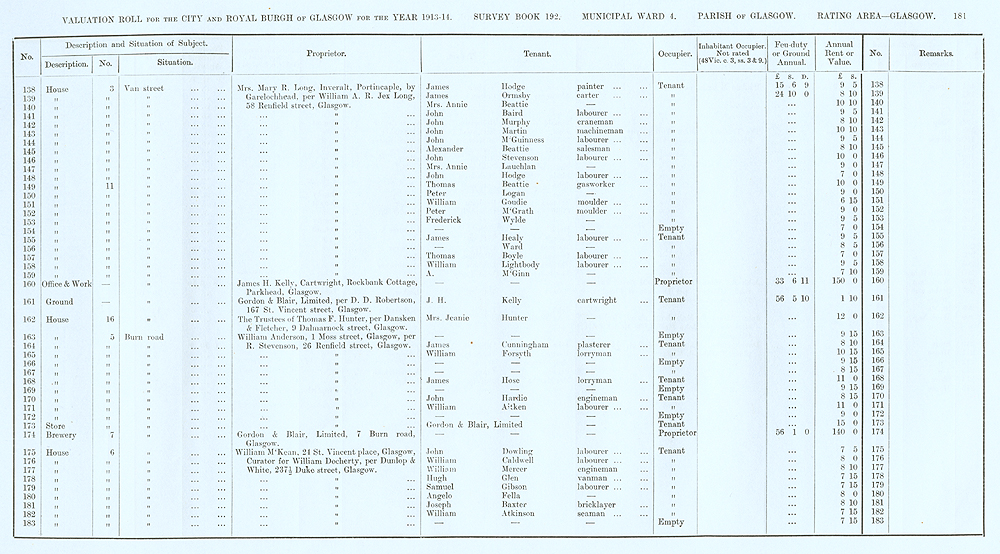 Glasgow Valuation Roll VR 1913-14, Ward 04, p181
