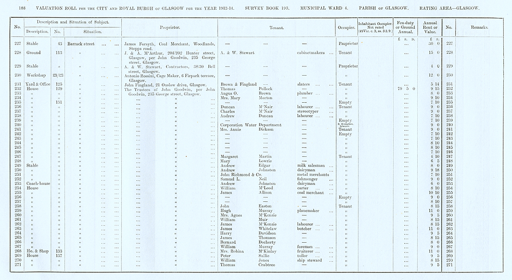 Glasgow Valuation Roll VR 1913-14, Ward 04, p188