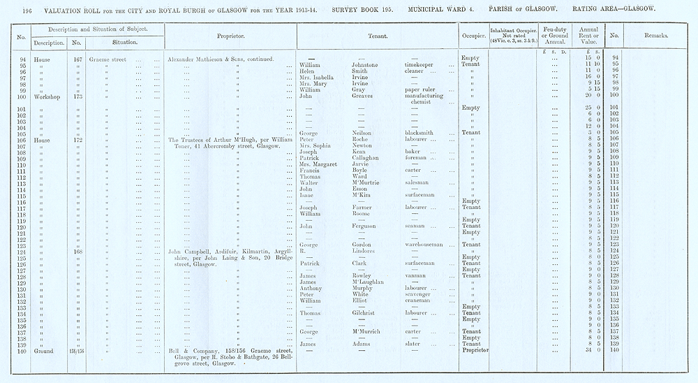 Glasgow Valuation Roll VR 1913-14, Ward 04, p196
