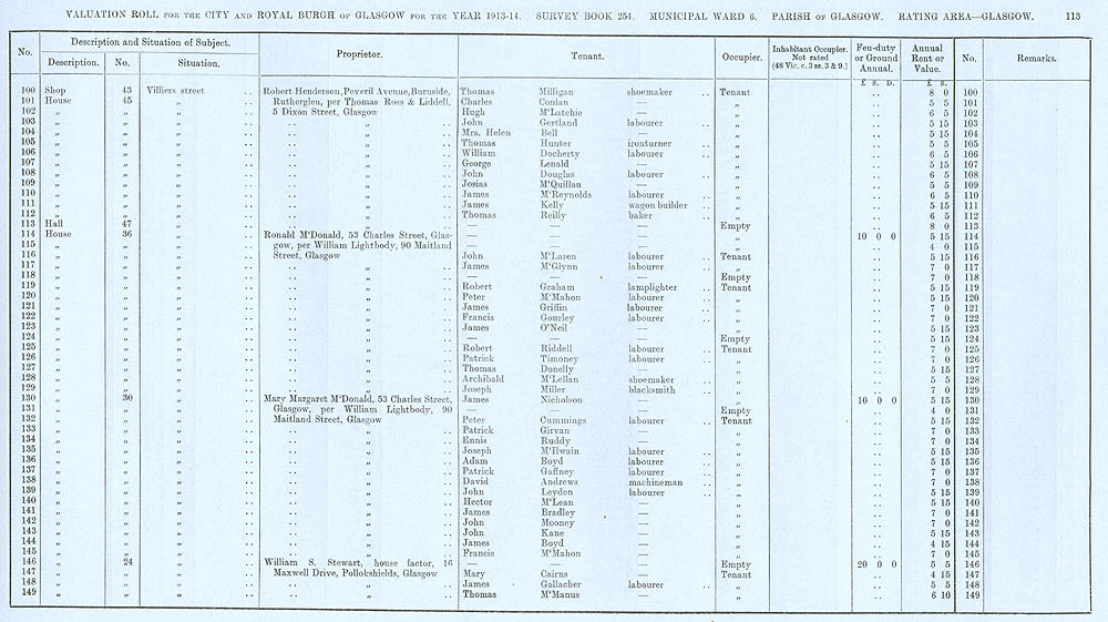 Glasgow Valuation Roll VR 1913-14, Ward 06, p113
