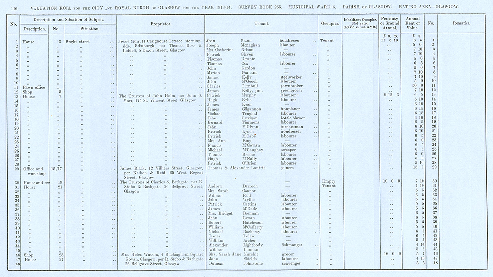 Glasgow Valuation Roll VR 1913-14, Ward 06, p116