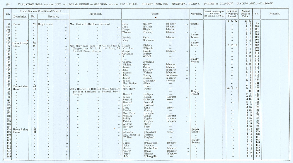 Glasgow Valuation Roll VR 1913-14, Ward 06, p118