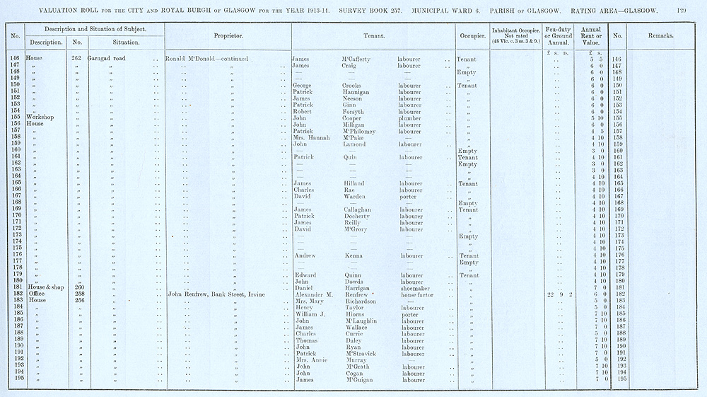 Glasgow Valuation Roll VR 1913-14, Ward 06, p129