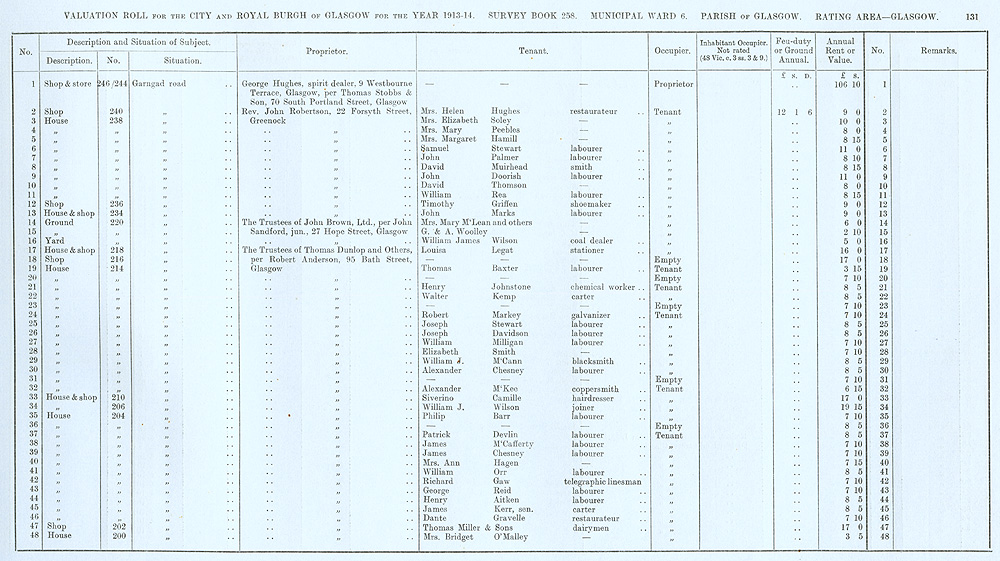Glasgow Valuation Roll VR 1913-14, Ward 06, p131