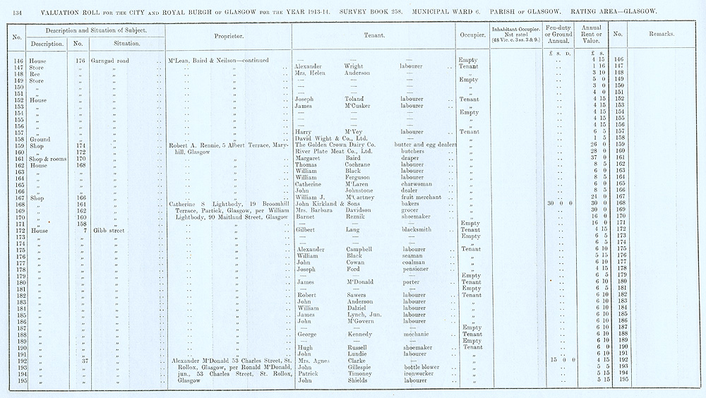 Glasgow Valuation Roll VR 1913-14, Ward 06, p134