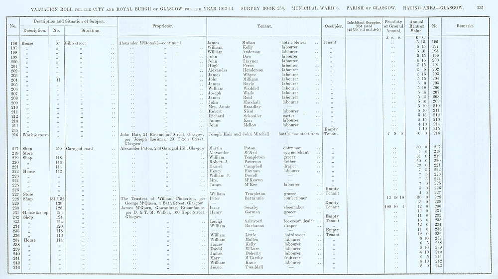 Glasgow Valuation Roll VR 1913-14, Ward 06, p135