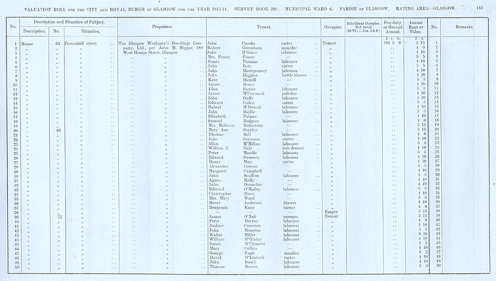 Glasgow Valuation Roll VR 1913-14, Ward 06, p143
