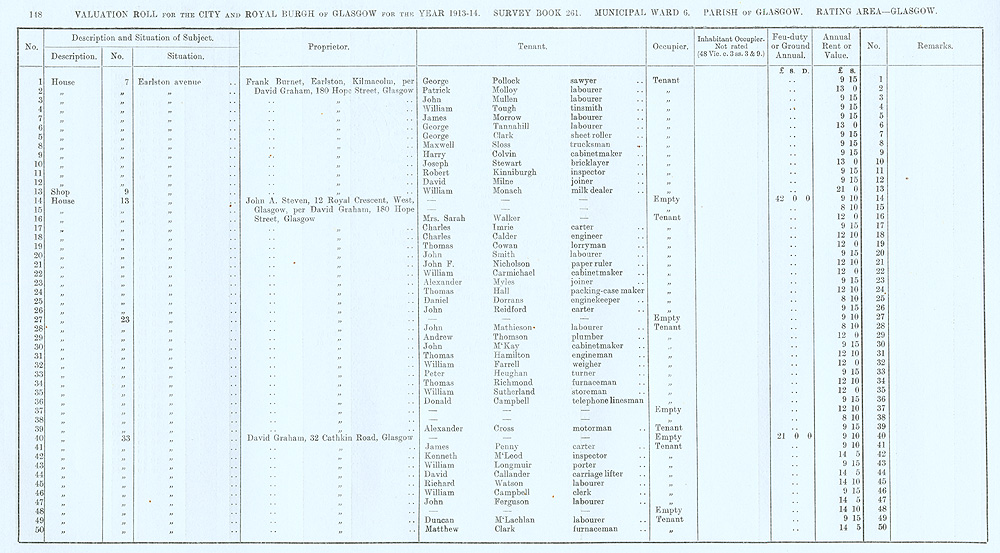 Glasgow Valuation Roll VR 1913-14, Ward 06, p148