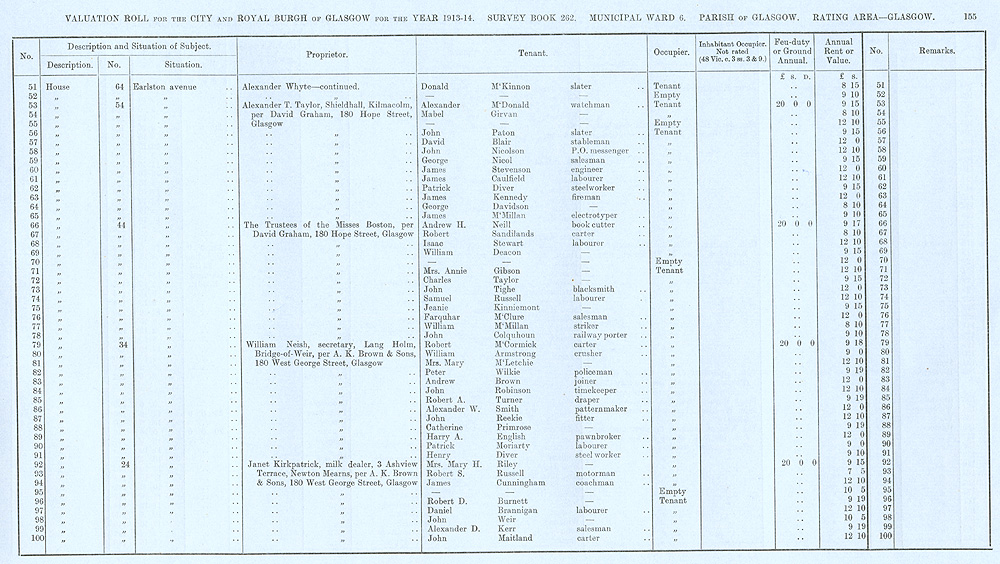 Glasgow Valuation Roll VR 1913-14, Ward 06, p155