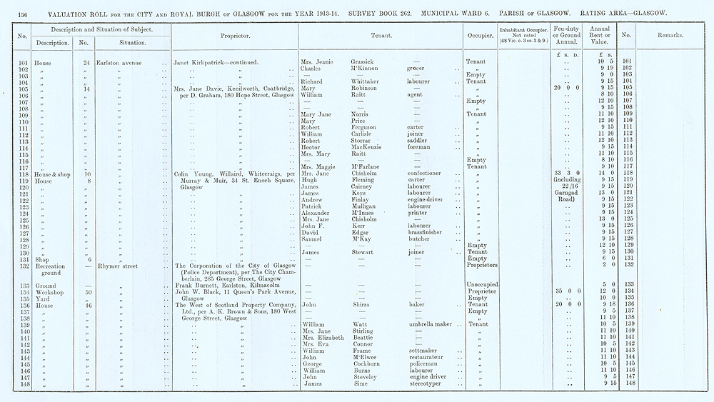 Glasgow Valuation Roll VR 1913-14, Ward 06, p156