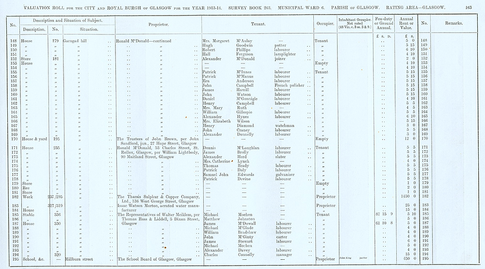 Glasgow Valuation Roll VR 1913-14, Ward 06, p163