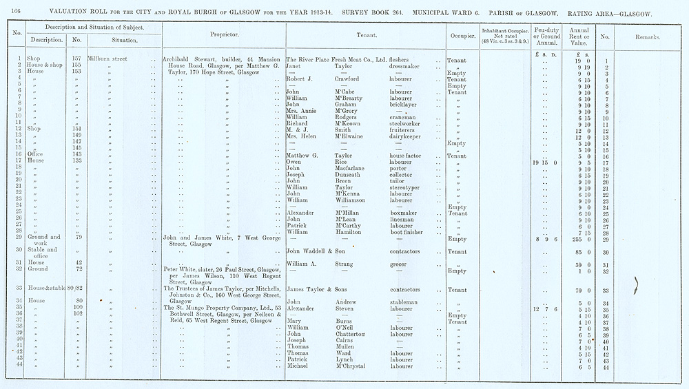 Glasgow Valuation Roll VR 1913-14, Ward 06, p166