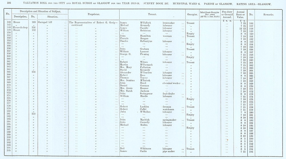 Glasgow Valuation Roll VR 1913-14, Ward 06, p186