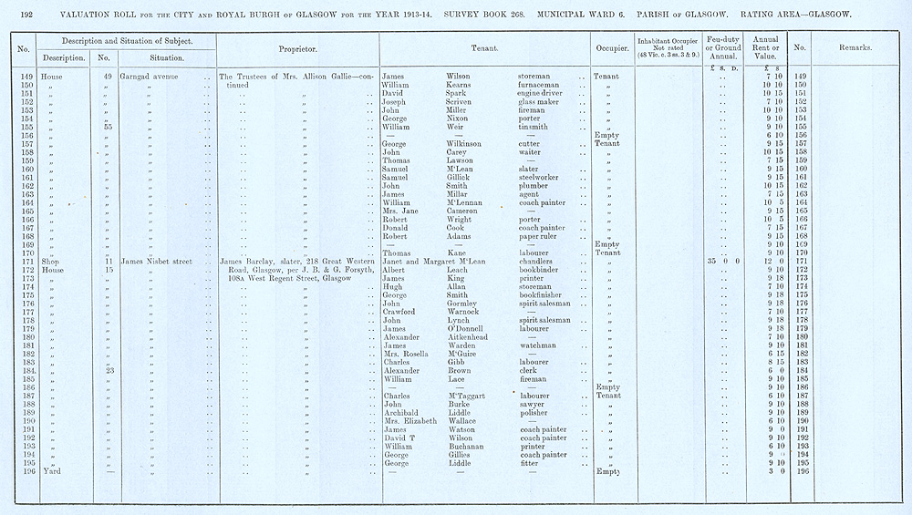 Glasgow Valuation Roll VR 1913-14, Ward 06, p192