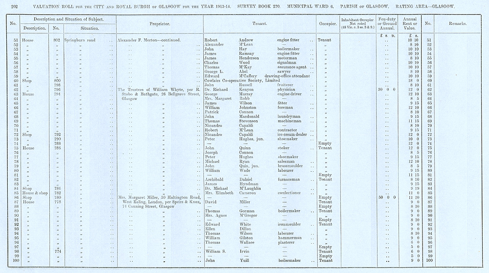 Glasgow Valuation Roll VR 1913-14, Ward 06, p202