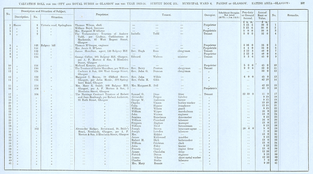 Glasgow Valuation Roll VR 1913-14, Ward 06, p207