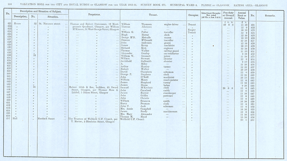 Glasgow Valuation Roll VR 1913-14, Ward 06, p216