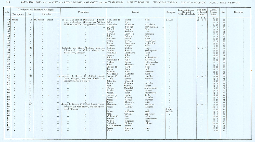 Glasgow Valuation Roll VR 1913-14, Ward 06, p218