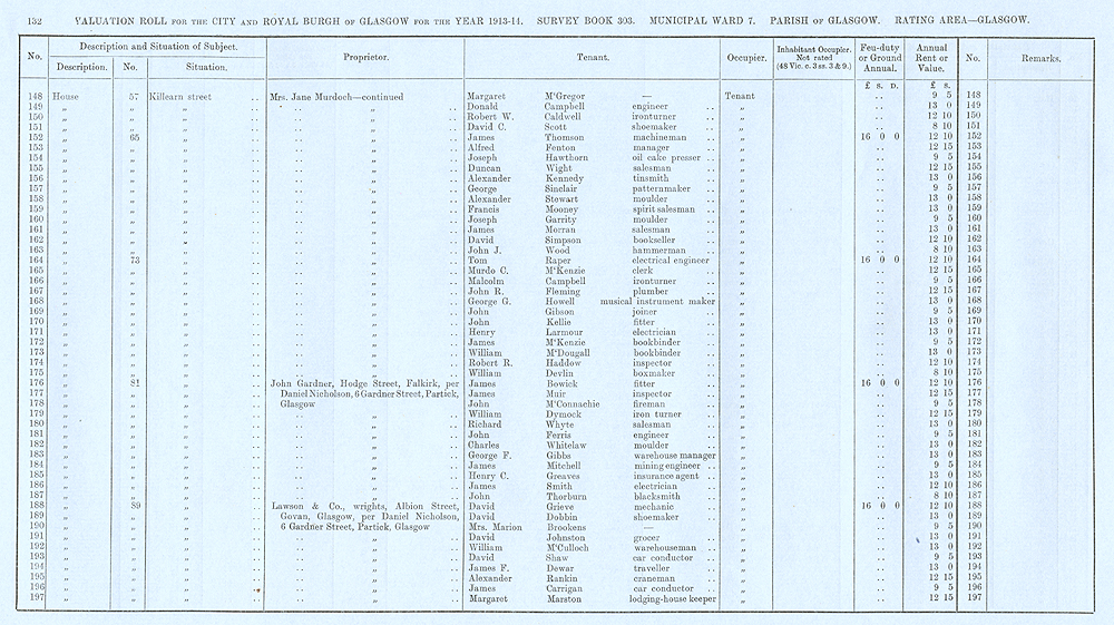 Glasgow Valuation Roll VR 1913-14, Ward 07, p132