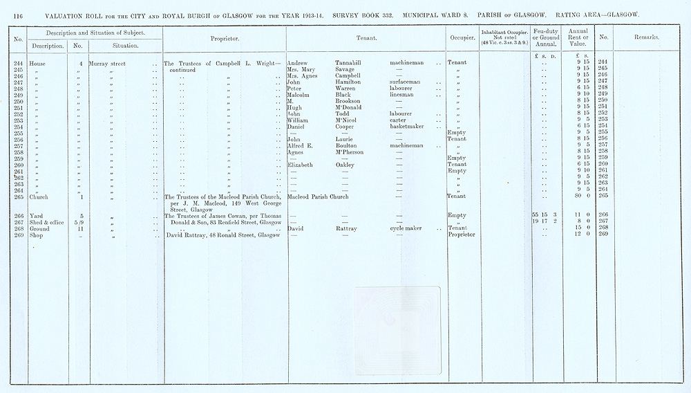 Glasgow Valuation Roll VR 1913-14, Ward 08, p116