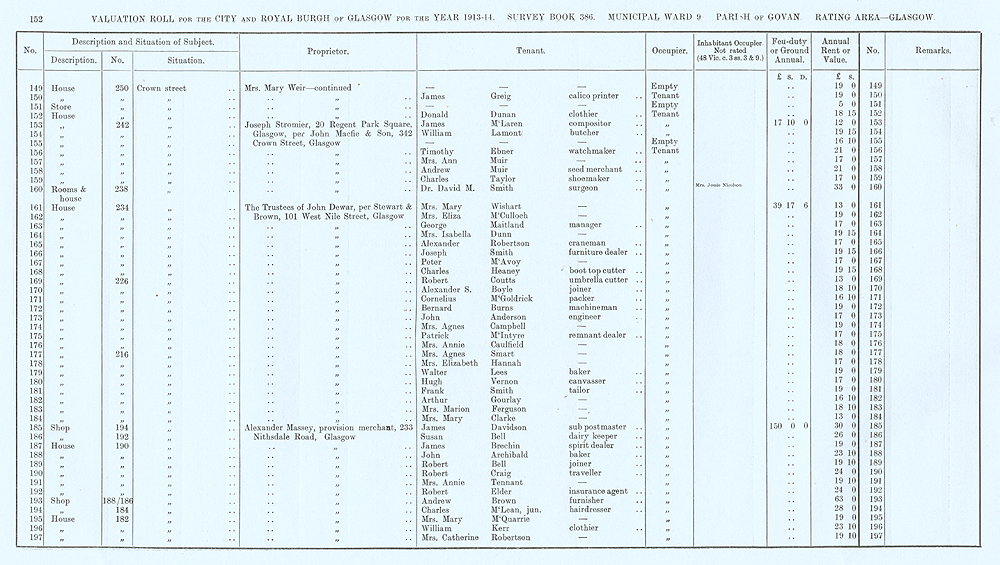 Glasgow Valuation Roll VR 1913-14, Ward 09, p152